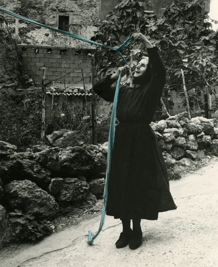 The inhabitants of Italian artist Maria Lai’s hometown of Ulassai live surrounded by mountains and a theatre of rocks, far from Sardinia’s famous coastline. This book documents Lai’s best-known large-scale collective art project, Legarsi alla Montagna (Bound to the Mountain) which took place over 3 days beginning on September 8th, 1981. Harkening back to a Sardinian legend of a young girl saved from death by chasing a blue ribbon out of a cave, the artist convinced the residents of Ulassai to tie their homes and the mountain together with 17 miles of blue ribbon. A symbolic act of communal unity, the process was tempered by personal conflicts and ancient family feuds, resulting in ribbon that was knotted (for friendship), wrapped tightly (for conflict), or hung with bread (for love). This combination of land art, performance art, and sculpture was captured at the time by renowned photographer Piero Berengo Gardin, in images that the artist has worked with watercolours and markers. Art historian Elena Pontiggia has contributed the text.Text in English and Italian.