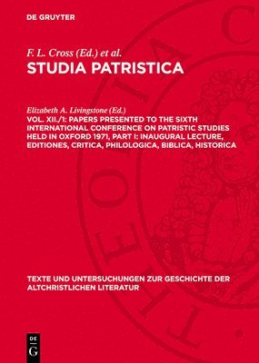 Papers Presented to the Sixth International Conference on Patristic Studies Held in Oxford 1971, Part I: Inaugural Lecture, Editiones, Critica, Philologica, Biblica, Historica
