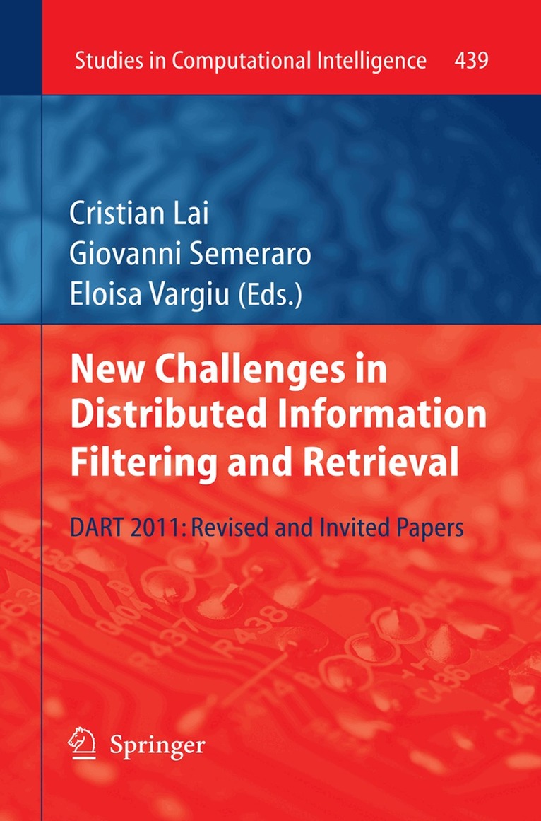 This volume focuses on new challenges in distributed Information Filtering and Retrieval. It collects invited chapters and extended research contributions from the DART 2011 Workshop, held in Palermo (Italy), on September 2011, and co-located with the XII International Conference of the Italian Association on Artificial Intelligence. The main focus of DART was to discuss and compare suitable novel solutions based on intelligent techniques and applied to real-world applications.The chapters of this book present a comprehensive review of related works and state of the art. Authors, both practitioners and researchers, shared their results in several topics such as "Multi-Agent Systems", "Natural Language Processing", "Automatic Advertisement", "Customer Interaction Analytics", "Opinion Mining".