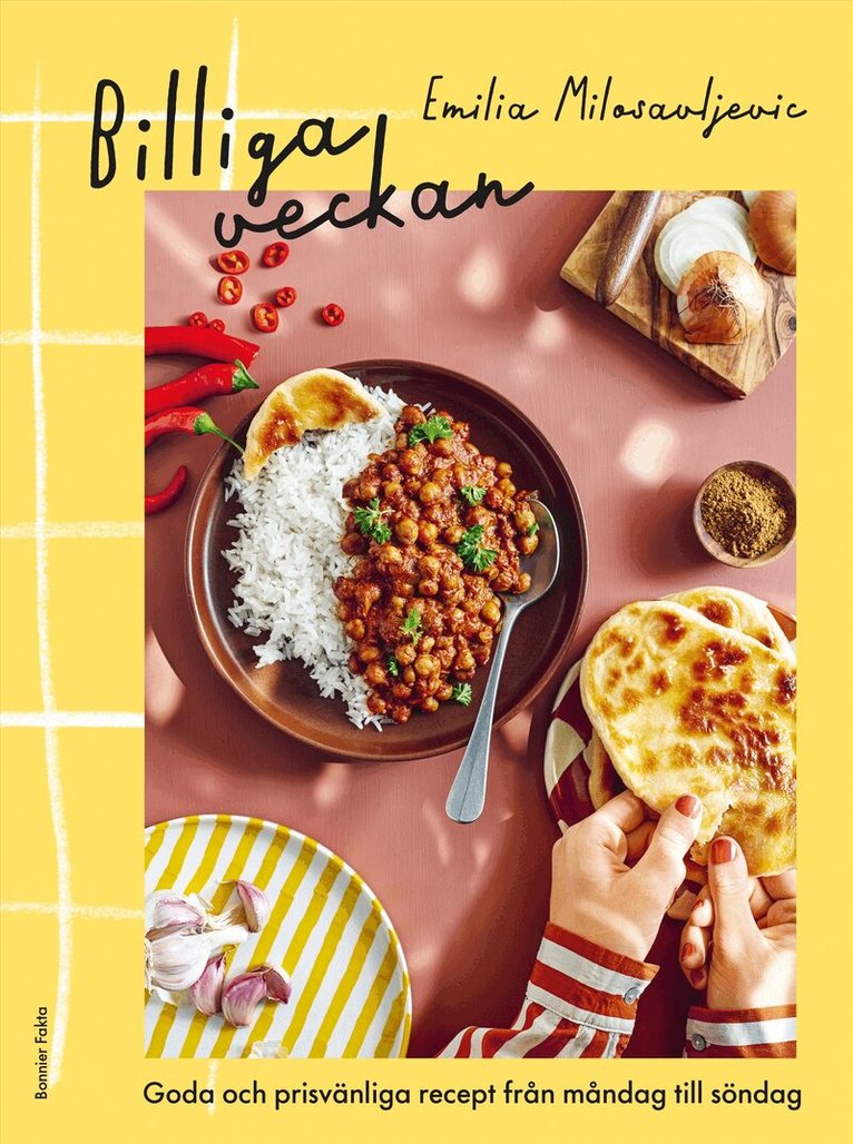 Med Billiga veckan visar Emilia Milosavljevic att det går att äta riktigt gott även på en snävare budget. Hon lagar färgstark mat till en överkomlig kostnad för hela veckan, varje veckodag utifrån ett tema som matlådemat, världens mat och middagar på max 30 minuter. Här finns lördagslyx på budget och middagar för under 50-lappen, men också inspiration och recept till frukost, mellanmål och bakverk.