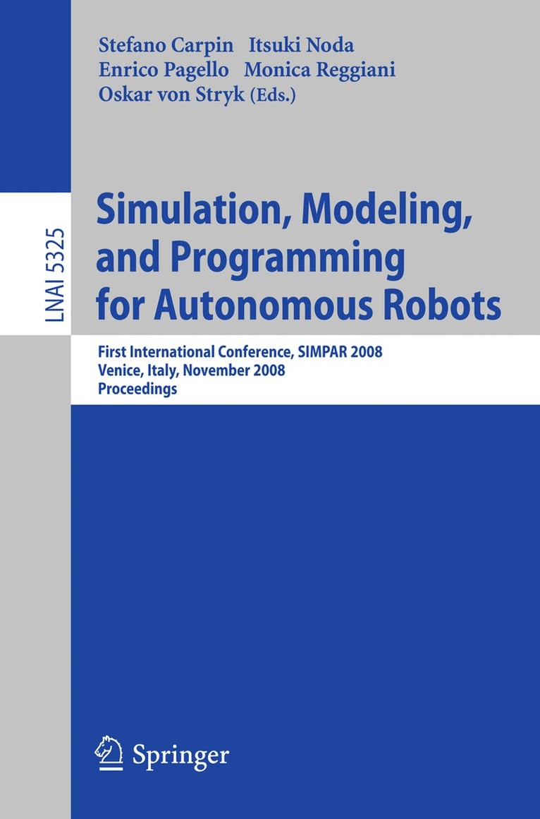 This book constitutes the refereed proceedings of the First International Conference on Simulation, Modeling, and Programming for Autonomous Robots, SIMPAR 2008, held in Venice, Italy, in November 2008. The 29 revised full papers and 21 revised poster papers presented were carefully reviewed and selected from 42 submissions. The papers address all current issues of robotics applications and simulation environments thereof, such as 3D robot simulation, reliability, scalability and validation of robot simulation, simulated sensors and actuators, offline simulation of robot design, online simulation with realtime constraints, simulation with software/hardware-in-the-loop, middleware for robotics, modeling framework for robots and environments, testing and validation of robot control software, standardization for robotic services, communication infrastructures in distributed robotics, interaction between sensor networks and robots, human robot interaction, and multirobot. The papers are organized in topical sections on simulation, programming, and applications.
