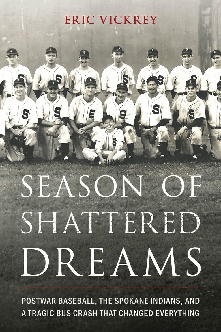 The story of one of the most significant and overlooked seasons in professional baseball, told through the travails of the Spokane Indians On June 24, 1946, a bus carrying the Spokane Indians baseball team crashed to the bottom of a deep ravine in Washington state’s Cascade mountains, killing nine players. To this day, it remains the deadliest accident in the history of American professional sports. In Season of Shattered Dreams: Postwar Baseball, the Spokane Indians, and a Tragic Bus Crash That Changed Everything, Eric Vickrey details the series of events that occurred before, during, and after the heartbreaking accident. Vickrey chronicles the often-overlooked impact that the end of World War II had on the major and minor leagues, now crowded with players returning from military service. The Spokane Indians were no exception, with several top prospects and former big leaguers arriving that season. The journeys of three Spokane players in particular—Vic Picetti, Ben Geraghty, and Jack Lohrke—reveal the impact of the war on players’ lives, the struggles of a minor-league career, and the devastating impact of that catastrophic crash. The Spokane Indians were not your average minor-league team, and though their story has been largely forgotten with time, it is one that deserves to be told. Featuring original interviews, as well as letters and photos from the personal collections of players and their families, Season of Shattered Dreams offers incredible insight into one of the most singular seasons in professional baseball.