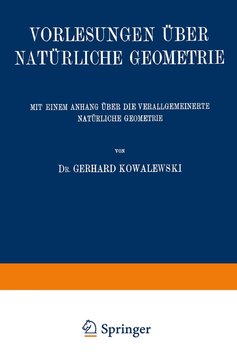 Mit Einem Anhang über die Verallgemeinerte Natürliche Geometrie