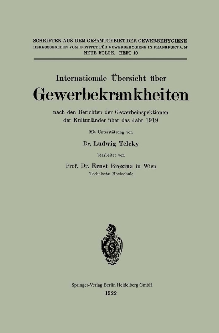 Internationale Übersicht über Gewerbekrankheiten nach den Berichten der Gewerbeaufsichtsbehörden der Kulturländer über die Jahre 1920 bis 1926