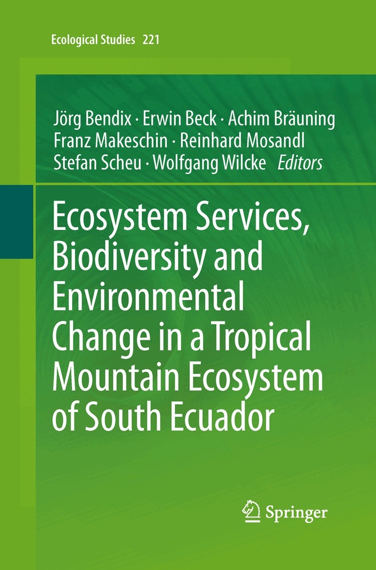 An interdisciplinary research unit consisting of 30 teams in the natural, economic and social sciences analyzed biodiversity and ecosystem services of a mountain rainforest ecosystem in the hotspot of the tropical Andes, with special reference to past, current and future environmental changes. The group assessed ecosystem services using data from ecological field and scenario-driven model experiments, and with the help of comparative field surveys of the natural forest and its anthropogenic replacement system for agriculture. The book offers insights into the impacts of environmental change on various service categories mentioned in the Millennium Ecosystem Assessment (2005): cultural, regulating, supporting and provisioning ecosystem services. Examples focus on biodiversity of plants and animals including trophic networks, and abiotic/biotic parameters such as soils, regional climate, water, nutrient and sediment cycles. The types of threats considered include land use and climate changes, as well as atmospheric fertilization. In terms of regulating and provisioning services, the emphasis is primarily on water regulation and supply as well as climate regulation and carbon sequestration. With regard to provisioning services, the synthesis of the book provides science-based recommendations for a sustainable land use portfolio including several options such as forestry, pasture management and the practices of indigenous peoples. In closing, the authors show how they integrated the local society by pursuing capacity building in compliance with the CBD-ABS (Convention on Biological Diversity - Access and Benefit Sharing), in the form of education and knowledge transfer for application.