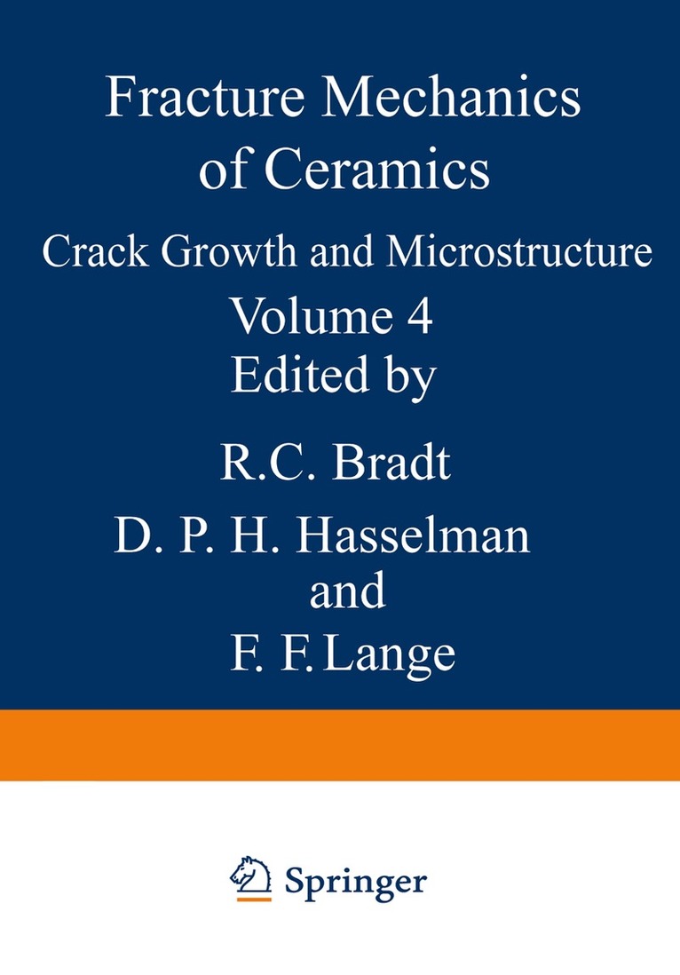 These volumes, 3 and 4, of Fracture Mechanics of Ceramics con stitute the proceedings of an international symposium on the frac ture mechanics of ceramics held at the Pennsylvania State Univer sity, University Park, PA on July 27, 28, and 29, 1977. Volumes 1 and 2 were published previously as the proceedings of a sympo sium of the same name held July 11, 12, and 13, 1973, also at Penn State. All four volumes published to date concentrate on the fracture aspects of the mechanical behavior of brittle ceramics in terms of the characteristics of cracks. The program chairmen gratefully acknowledge the financial as sistance for the symposium provided by the Office of Naval Re search, the Energy Research and Development Administration, and the Army Research Office. Without their support the quality and mag nitude of this conference simply would not have been possible. Numerous individuals contributed to the success of the con ference, but unfortunately they cannot all be listed here. However the program chairmen would especially like to recognize the contri butions of Penn State Conference Coordinator, Mr. Ronald Avillion, whose expertise in planning and organization was indispensable; Dr. Fred R. Matson for his interesting after dinner speech; and Drs. A. M. Diness, J. C. Hurt, and D. W. Readey for their en couragement and valuable suggestions regarding the program. Finally, we wish to also thank our joint secretaries for the patience and help in bringing these proceedings to press.