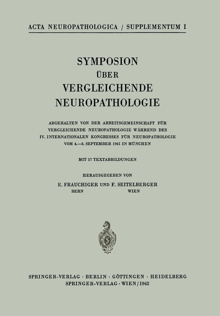 Donnerstag, 7. 9. 1961 Der dritte Nachmittag war Demonstrationen und den Diskussionen gewidmet, die rege beniitzt wurden. AuBerdem ergrilfen das Wort Dr. PARRY und Frau Dr. BEOK (tiber Scrapie), Prof. B. OSTERTAG (Tiibingen) und Prof. H. PETTE (Hamburg). Es mag fiir die Vitalitat der Arbeitsgruppe fiir vergleichende Neuropathologie zeugen, daB schon 2 Jahre nach deren Griindung ein internationales Symposion abgehalten werden konnte, und daB dies wahrend des Internationalen Neuro- pathologenkongresses moglich war, erfiillt uns mit Freude und Genugtuung, sind wir doch auf den engen Kontakt mit der humanen Neuropathologie angewiesen; aber auch das umgekehrte ist der Fall, weshalb der Wunsch angebracht sei, es mochte bei zukiinftigen Kongressen der vergleichenden Neuropathologie inner- halb des Programmes eine entsprechende Zeit eingeraumt werden. Der Sinn und die Bedeutung dieses ersten Symposions lagen darin, den Kon- takt unter den Forschern auf diesem Gebiet personlich enger zu gestalten, den Standort unseres Wissens darzustellen, um zu erkennen, wohin der Weg in der naheren Zukunft gehen soli.Aus diesen Griinden wurde das Programm weniger nach Tiefe und Hohe der Themata angelegt, als vielmehr nach der Breite, so daB nach Moglichkeit die wichtigsten Fragen unseres nach Problemen und Tierarten recht verschiedenen, aber reichen Materials zur Sprache kiimen.
