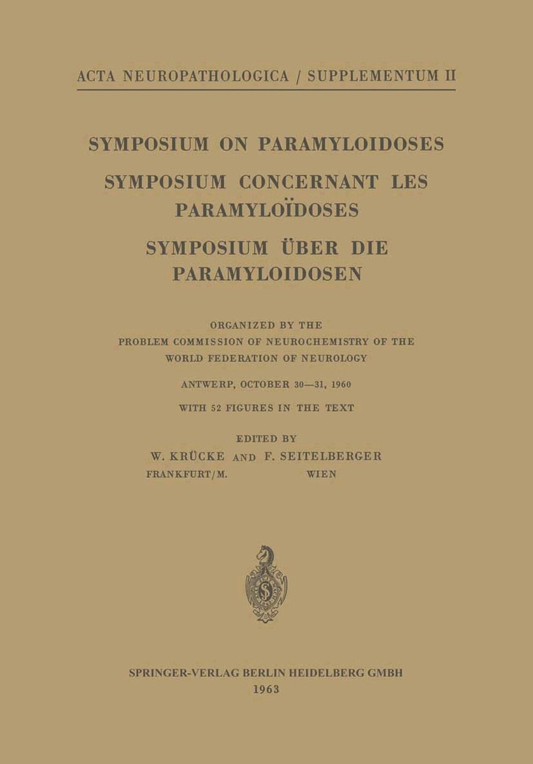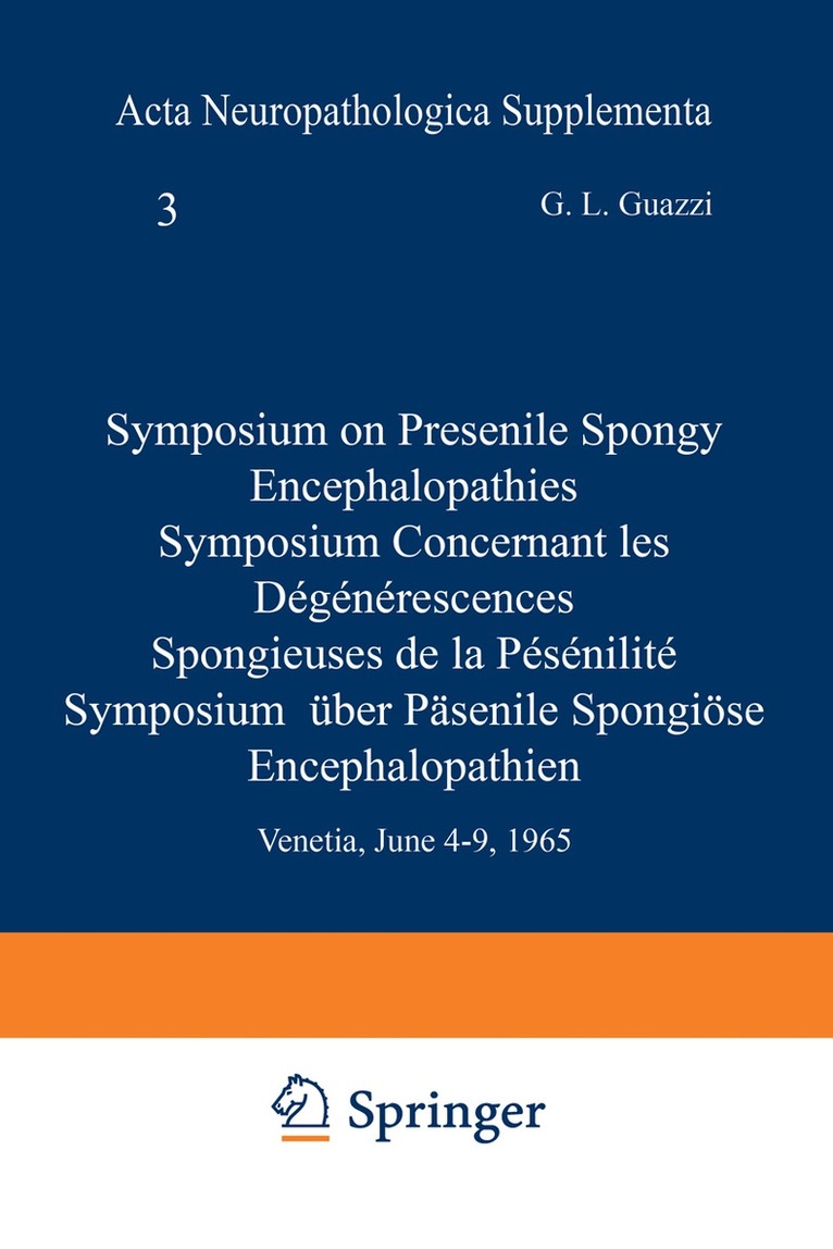 Symposium on Presenile Spongy Encephalopathies / Symposium Concernant les Dégénérescences Spongieuses de la Présénilité / Symposium Über Präsenile Spongiöse Encephalopathien