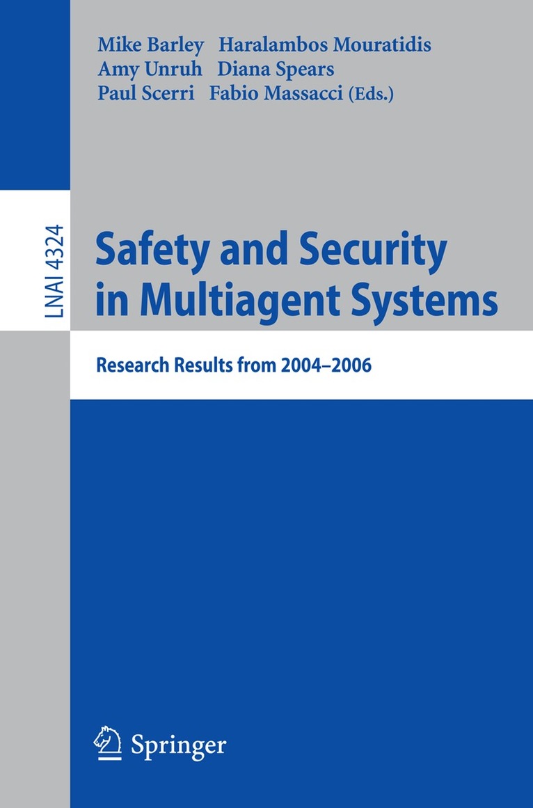 As intelligent autonomous agents and multiagent system applications become more pervasive, it becomes increasingly important to understand the risks associated with using these systems. Incorrect or inappropriate agent behavior can have harmful - fects, including financial cost, loss of data, and injury to humans or systems. For - ample, NASA has proposed missions where multiagent systems, working in space or on other planets, will need to do their own reasoning about safety issues that concern not only themselves but also that of their mission. Likewise, industry is interested in agent systems that can search for new supply opportunities and engage in (semi-) automated negotiations over new supply contracts. These systems should be able to securely negotiate such arrangements and decide which credentials can be requested and which credentials may be disclosed. Such systems may encounter environments that are only partially understood and where they must learn for themselves which aspects of their environment are safe and which are dangerous. Thus, security and safety are two central issues when developing and deploying such systems. We refer to a multiagent system’s security as the ability of the system to deal with threats that are intentionally caused by other intelligent agents and/or s- tems, and the system’s safety as its ability to deal with any other threats to its goals.