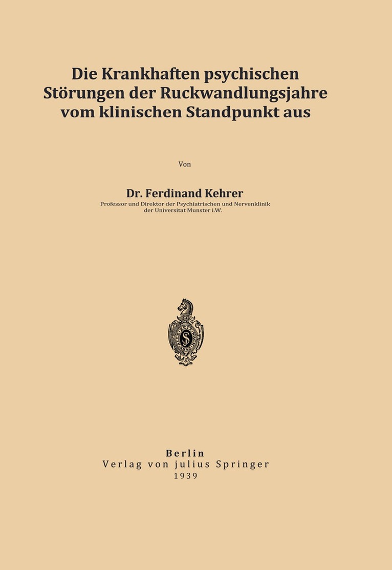 Die krankhaften psychischen Störungen der Rückwandlungsjahre vom klinischen Standpunkt aus