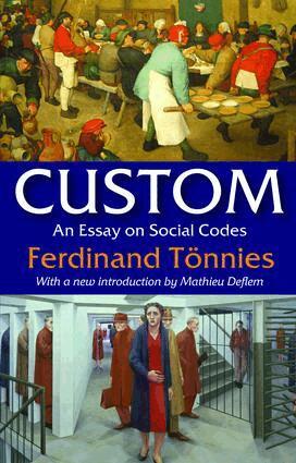 In Custom , Ferdinand Tonnies illustrates the relationship of custom to various aspects of culture, such as religion, gender, and family. Tonnies argues that all social norms are evolved from a basic sense of order, which is largely derived from customs. As such, custom refers to the ideal, and the desirable, and it mediates subjective aspects of social life. Tonnies makes observations in Custom that are just as true today as when they were written over a century ago. The pivotal idea in Tonnies work is the observation that custom, like its individual counterpart habit, has three distinct aspects: a fact--an actual way of conduct; a norm--a general rule of conduct; and a will. The analysis, extended into the field of collective behaviour, helps to explain how far custom can be regarded as a manifestation of a common will. Custom is a classic contribution in the grand canon of law and society scholarship. Moreover, the volume introduces several key elements of Tonnies' work focusing on broader sociological thought, which benefits both the theoretical understanding of law as an object of social science reflection, as well as provides empirical insights into the roles of law in society.