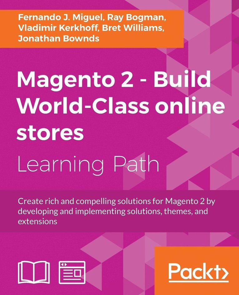 Create rich and compelling solutions for Magento 2 by developing and implementing solutions, themes, and extensionsAbout This Book* Be proficient in the main functionalities, resources, and system structure of Magento 2* Get to grips with this practical and hands-on guide to raise your web development skills to the next level* Packed with several advanced recipes, not just to manage your online store, but to extend and design it as wellWho This Book Is ForThe ideal target audience for this course could be anyone who wants to mould their skills in building amazing e-commerce websites using Magento. We begin right from getting you started with Magento to becoming an expert at building your own online stores with it.What You Will Learn* Install and set up the Magento Ecosystem* Carry out performance adjustments to speed up your Magento system* Transfer your Magento 1 database to Magento 2 using the Magento 2 system tools* Build a Magento 2 multi-store by creating a root catalog, subdirectories, and products* Design custom themes within the Magento 2 framework* Create extensions using Magento 2* Discover what makes Magento 2 different and more powerfulIn DetailMagento is the leading e-commerce software trusted by world`s leading organizations. Used by thousands of merchants for their transactions worth billions, it provides the flexibility to customize the content and functionality of your website. Our Magento Course will help you gain knowledge and skills that are required to design & develop world class online stores.Magento 2 Development Essentials - This book begins by setting up Magento 2 before gradually moving onto setting the basic options of the Sell System. You will learn Search Engine Optimization aspects, create design and customize theme layout, and adjust the Magento System to achieve great performance.Magento 2 Cookbook - This book is divided into several recipes, which show you which steps to take to complete a specific action. It will cover configuring your categories and products, performance tuning, creating a theme, developing a module etc. At the end of this book, you will gain the knowledge to start building a success website.Mastering Magento 2 - This is a comprehensive guide to using the all new features and interface of Magento 2 to build, extend, and design online stores. This book is your roadmap to managing your Magento store which teaches advanced and successful techniques. Focusing on Magento's Community version, this book offers you advanced guidance on managing, optimizing, and extending your store while taking advantage of the new features of Magento 2.This Learning Path combines some of the best that Packt has to offer in one complete, curated package. It includes content from the following Packt products* Magento 2 Development Essentials by Fernando J. Miguel* Magento 2 Cookbook by Ray Bogman and Vladimir Kerkhoff* Mastering Magento 2 by Bret Williams and Jonathan BowndsStyle and approachThis course begins by setting up Magento 2 before gradually moving on to setting the basic options of the Sell System. You will master Search Engine Optimization aspects, create designs and customize theme layouts, develop new extensions, and adjust the Magento System to achieve great performance. The book covers everything from creating and managing multiple stores to fine-tuning Magento for speed and performance.