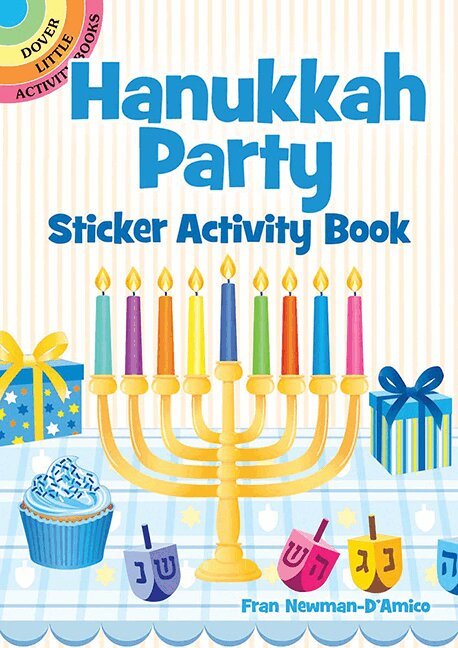 Create your own Hanukkah party picture with these colorful, reusable stickers! Complete the festive scene on the inside covers of this pocket-size activity book with dozens of images that include a menorah, candles, dreidels, wrapped gifts, gold coins, jelly donuts, and other traditional holiday favorites. A great gift for little ones celebrating the Festival of Lights!