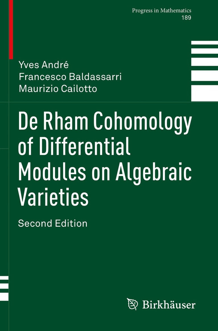 This is the revised second edition of the well-received book by the first two authors. It offers a systematic treatment of the theory of vector bundles with integrable connection on smooth algebraic varieties over a field of characteristic 0. Special attention is paid to singularities along divisors at infinity, and to the corresponding distinction between regular and irregular singularities. The topic is first discussed in detail in dimension 1, with a wealth of examples, and then in higher dimension using the method of restriction to transversal curves.The authors develop a new approach to classical algebraic/analytic comparison theorems in De Rham cohomology, and provide a unified discussion of the complex and the p-adic situations while avoiding the resolution of singularities.They conclude with a proof of a conjecture by Baldassarri to the effect that algebraic and p-adic analytic De Rham cohomologies coincide, under an arithmetic condition on exponents.As used in this text, the term “De Rham cohomology” refers to the hypercohomology of the De Rham complex of a connection with respect to a smooth morphism of algebraic varieties, equipped with the Gauss-Manin connection. This simplified approach suffices to establish the stability of crucial properties of connections based on higher direct images. The main technical tools used include: Artin local decomposition of a smooth morphism in towers of elementary fibrations, and spectral sequences associated with affine coverings and with composite functors.
