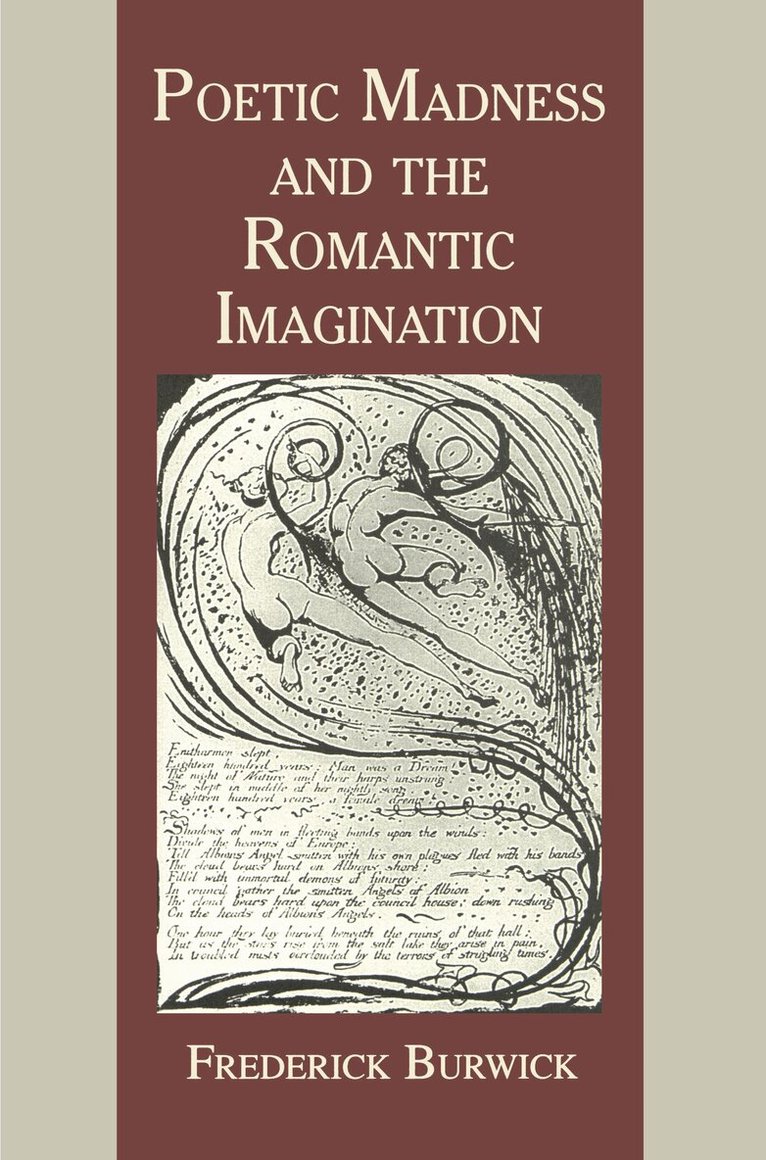 Using as his starting point the historical notion that poets may be, at least in moments of inspiration, "out of their senses," Frederick Burwick here explores the theoretical implications of inspiration as furor poeticus, particularly as that concept was presented during the latter eighteenth and early nineteenth centuries. Drawing on social and medical attitudes toward madness and the so-called poetic rapture, Burwick addresses the appeal to poetic madness in critical theory, the thematization of the mad poet in literature, and the reception of mad poets. With a mad king on the throne of England, mad prophets in the marketplace, and mad poets in their midst, many writers of this period, not surprisingly, used their fiction to explore the conditions of madness. In discussing the mad poet as a character in Romantic literature, Burwick examines the reception and representation of the Italian poet Torquato Tasso in Goethe's play and in the poetry and criticism of the Schlegels, Byron, Shelley, Peacock, and Hazlitt. In his commentary on narratives of madness, Burwick discusses Nodier's Jean-François les bas-bleus, Hoffmann's Der goldne Topf, Shelley's Julian and Maddalo, and Blake's account of the struggle between Los and Urizen. The final section interprets the visual strategies adopted by Hölderlin, Nerval, and Clare in relating their visionary experiences.