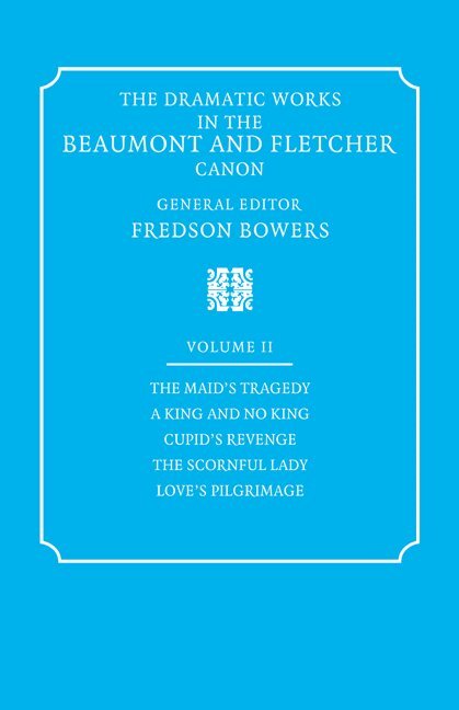 The Dramatic Works in the Beaumont and Fletcher Canon: Volume 2, The Maid's Tragedy, A King and No King, Cupid's Revenge, The Scornful Lady, Love's Pilgrimage