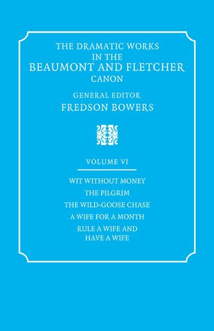 The Dramatic Works in the Beaumont and Fletcher Canon: Volume 6, Wit Without Money, The Pilgrim, The Wild-Goose Chase, A Wife for a Month, Rule a Wife and Have a Wife
