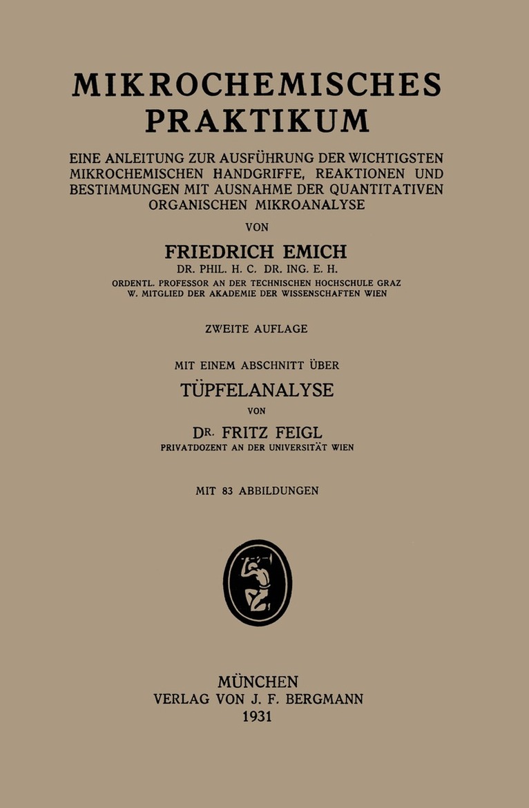 Dieser Buchtitel ist Teil des Digitalisierungsprojekts Springer Book Archives mit Publikationen, die seit den Anfängen des Verlags von 1842 erschienen sind. Der Verlag stellt mit diesem Archiv Quellen für die historische wie auch die disziplingeschichtliche Forschung zur Verfügung, die jeweils im historischen Kontext betrachtet werden müssen. Dieser Titel erschien in der Zeit vor 1945 und wird daher in seiner zeittypischen politisch-ideologischen Ausrichtung vom Verlag nicht beworben.