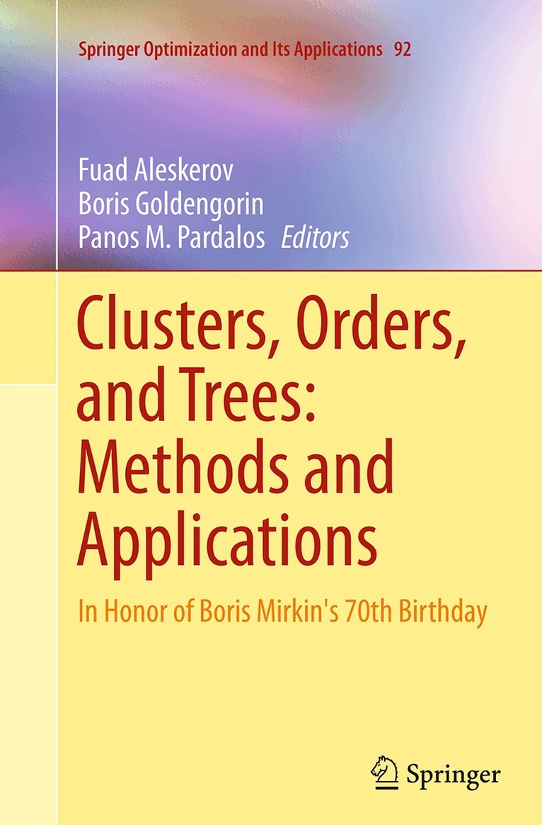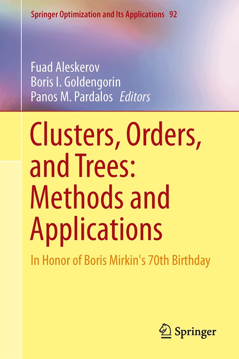 The volume is dedicated to Boris Mirkin on the occasion of his 70th birthday. In addition to his startling PhD results in abstract automata theory, Mirkin’s ground breaking contributions in various fields of decision making and data analysis have marked the fourth quarter of the 20th century and beyond. Mirkin has done pioneering work in group choice, clustering, data mining and knowledge discovery aimed at finding and describing non-trivial or hidden structures—first of all, clusters, orderings and hierarchies—in multivariate and/or network data.This volume contains a collection of papers reflecting recent developments rooted in Mirkin’s fundamental contribution to the state-of-the-art in group choice, ordering, clustering, data mining and knowledge discovery. Researchers, students and software engineers will benefit from new knowledge discovery techniques and application directions.
