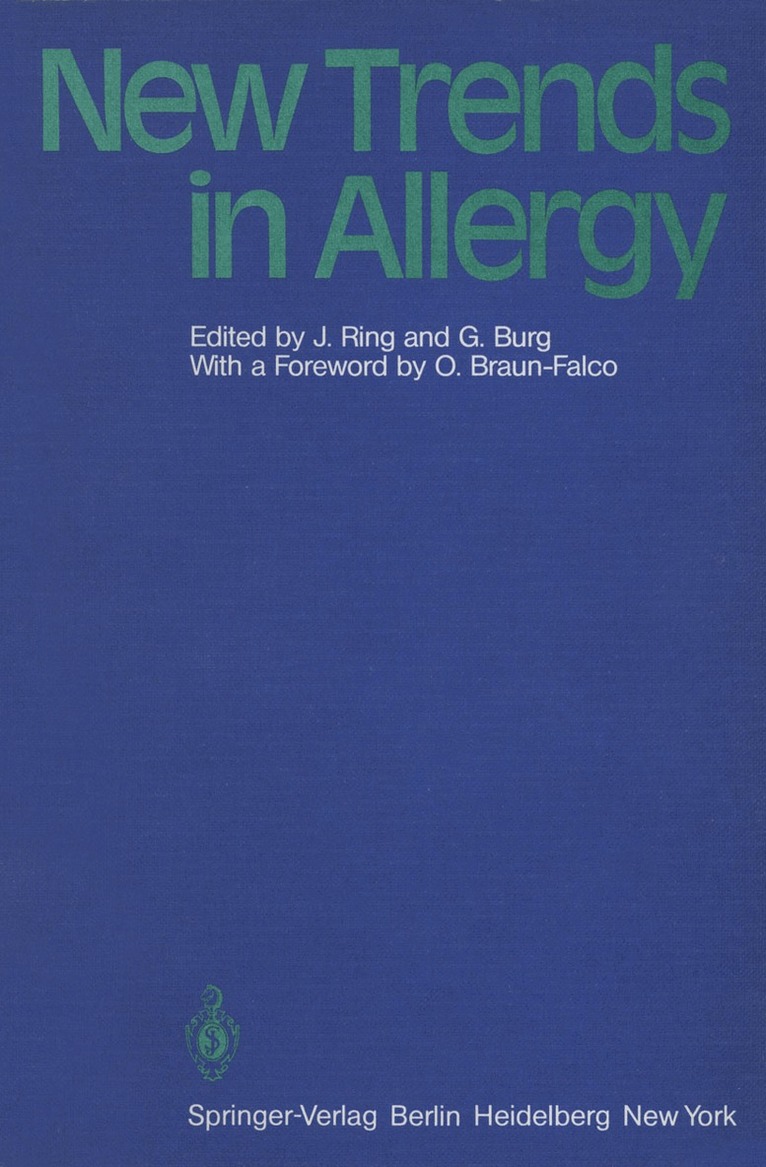 From the first to the third of August, 1980, an international sym posium entitled "New Trends in Allergy" was held in Munich, sponsored by the Ludwig-Maximilian University, Munich, in cooperation with the German Society for Allergy and Immunity Research and the European Society for Dermatological Research. The symposium pursued two main goals: to bring allergy oriented colleagues from various specialties such as dermatology, otorhinolaryngology, pediatrics, internal medicine, immunology, and pulmonology together for interdisciplinary contacts and dis cussions; and to attract internationally known experts in an effort to disseminate information on new and fundamental develop ments in allergology. The fact that English has become the lingua franca at congresses for the exchange of ideas in medical specialties led to the decision to hold the symposium in English. In spite of the mild handicap this posed for some participants, it was also a major factor in the symposium's success. This book contains the papers delivered by the invited speakers together with the poster presentations. They cover both basic ex perimental research as well as clinical problems in allergology.