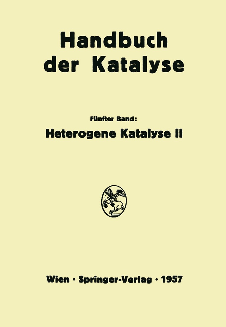 "Habent sua fata libelli. " In dem Vorwort zum Gesamtwerk, das 1941 dem ersten Band dieses Handbuches vorangestellt wurde, war die Absicht aus gesprochen und begründet worden, einen möglichst gleichzeitigen Querschnitt durch das Gebiet der Katalyse zu schaffen und deshalb das ganze Werk möglichst kurzfristig fertigzustellen. Dies schien zunächst zu gelingen, indem bis 1943 die Bände I bis IV, VI und VII trotz aller Schwierigkeiten der Kriegsjahre heraus gegeben werden konnten. Dann aber begannen die geschichtlichen Ereignisse übermächtig zu werden, und die schon weit gediehenen Vorbereitungen zum fehlenden Band V hatten zu ruhen. Der Herausgeber und der Verleger sind glück lich, daß nunmehr nach 13 Jahren die Lücke geschlossen werden kann, nicht zuletzt durch die aufopfernde Arbeit der Autoren, die ihre alten Manuskripte teilweise völlig umgearbeitet haben. Natürlich ist die Forschung besonders auf dem Gebiet der heterogenen Katalyse, der dieser Band gilt, inzwischen vorangeeilt, und die Brücke, die jetzt zwischen Band IV und VI geschlagen wird, liegt schon in beträchtlicher Höhe über den beiden Ufern. Es wäre aber nicht zu verantworten gewesen, um des ursprünglich geplanten gleichzeitigen Querschnitts willen nun nicht bis zur Gegenwart vorzustoßen. Band V behandelt die Fragen des eigentlichen Mecha nismus der heterogenen Katalyse und bildet so gewissermaßen das Herzstück des ganzen Handbuches. Es ist sicher von Vorteil für das Ganze, daß gerade in diesem Stück der neueste Stand berücksichtigt werden konnte.
