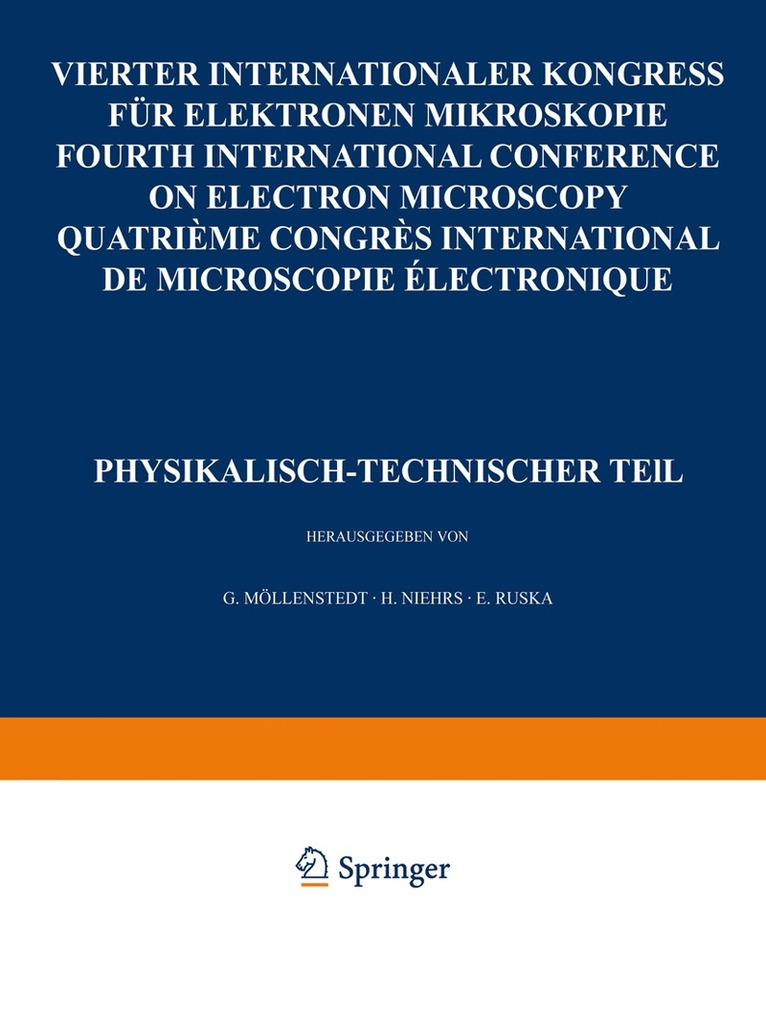 Die vorliegenden Verhandlungen des IV. Internationalen Kongresses für Elektronenmikro skopie, der unter den Auspizien der International Federation of Electron Microscope Societies im Jahre 1958 in Berlin stattfand, veranschaulichen, in welchem Ausmaß die Elektronenmikroskopie in den letzten Jahren für viele Bereiche der Forschung an Bedeutung gewonnen hat. Etwa 400 Vorträge und einige Diskussionsbemerkungen, vor mehr als I 000 Teilnehmern aus 26 Ländern gehalten, waren zu veröffentlichen, wenn wir der Tradition der früheren Internationalen Kongresse in Delft (1949), in Paris (1950) und in London (1954) treubleiben wollten. Zum ersten Male war es nicht möglich, alle auf einem Internationalen Kongreß für Elektronenmikroskopie gehaltenen Vorträge in einem einzigen Band zusammenzufassen. Der I. Band dieser Verhandlungen enthält sowohl die Arbeiten zur Theorie der Elektronenmikroskopie und über die physikalische sowie technische Weiterentwicklung der Geräte, als auch Mitteilungen über die Anwendung des Elek tronenmikroskops zur Erforschung kristallographischer und technologischer Probleme ein schließlich der Präparationstechnik. Der II. Band bringt die Arbeiten über die Anwendung des Elektronenmikroskops zur Lösung biologischer und medizinischer Frages'tellungen und über die entsprechenden Präparationsverfahren. In Abweichung von der Reihenfolge, in der die Vorträge auf dem Kongreß gehalten wurden, waren wir bemüht, die Mitteilungen nach ihrem Sinnzusammenhang in kleinere Sachgruppen einzuordnen, um ein leichtes und schnelles Auffinden zusammengehöriger Themen zu ermöglichen. Die Inhaltsverzeichnisse, die beiden Bänden beigefügt sind, vermitteln eine ausreichende Über sicht. Jeder Band enthält ein alphabetisches Mitarbeiterverzeichnis.