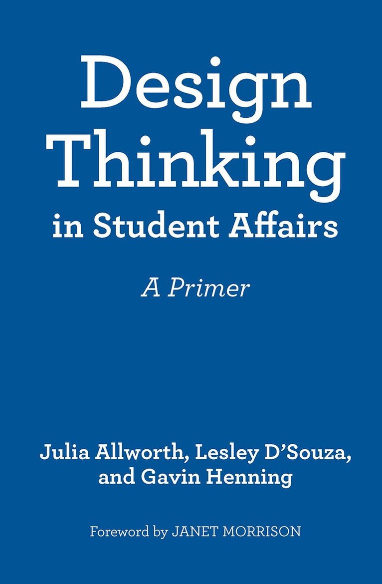 Design thinking is an innovative problem-solving framework. This introduction is the first book to apply its methodology to student affairs and, in doing so, points the way to its potentially wider value to higher education as a whole.With its focus on empathy, which is the need to thoroughly understand users’ experiences, design thinking is user-centered, similar to how student affairs is student-centered. Because the focus of design thinking is to design with users, not for users, it aligns well with student affairs practice. In addition, its focus on empathy makes design thinking a more equitable approach to problem-solving than other methods because all users’ experiences—not just the experiences of majority or “average” student—need to be understood. Centering empathy in problem-solving processes can be a tool to disrupt higher education systems and practices.Design thinking is a framework to foster innovation, and, by its nature, innovation is about responding to change factors with creativity. In an organization, design thinking is inherently connected to organizational change and culture because the process is really about changing people to help them rally around a disruptive idea. Implementing design thinking on a campus may in itself be disruptive and require a change management process. The beauty of using design thinking is that it can also act as a framework to support organizational culture change.Design thinking approaches, with their focus on stakeholder needs (as opposed to systemic norms), collaborative solutions building, and structured empathy activities can offer a concrete tool to disrupt harmful systems of power and oppression. Design thinking as a process is not a magic solution to equity problems, though it can be a powerful tool to approach the development of solutions that can address inequity. Design thinking is data-driven and considers both qualitative and quantitative data as necessary to gain most complete picture of an issue and its possible solutions, whether a product, program, or service.Design thinking has numerous benefits to afford students affairs. Chapter 1 outlines a case for design thinking in student affairs. Chapter 2 discusses a brief history of design thinking, noting its germination and evolution to current practice. Chapter 3 provides a detailed description of each step of the design thinking model with pertinent examples to make the steps clearer. Chapter 4 explains the intersection of equity and design thinking while chapter 5 explores the use of design thinking for organizational change. Chapter 6 presents a new model for design thinking assessment. Chapter 7 addresses the challenges and limitations of the process. Chapter 8 concludes the book by discussing the alignment of design thinking and student affairs and outlining next steps.Design thinking is an innovative process that can change the way higher education and student affairs operates, realizing the potential it offers.