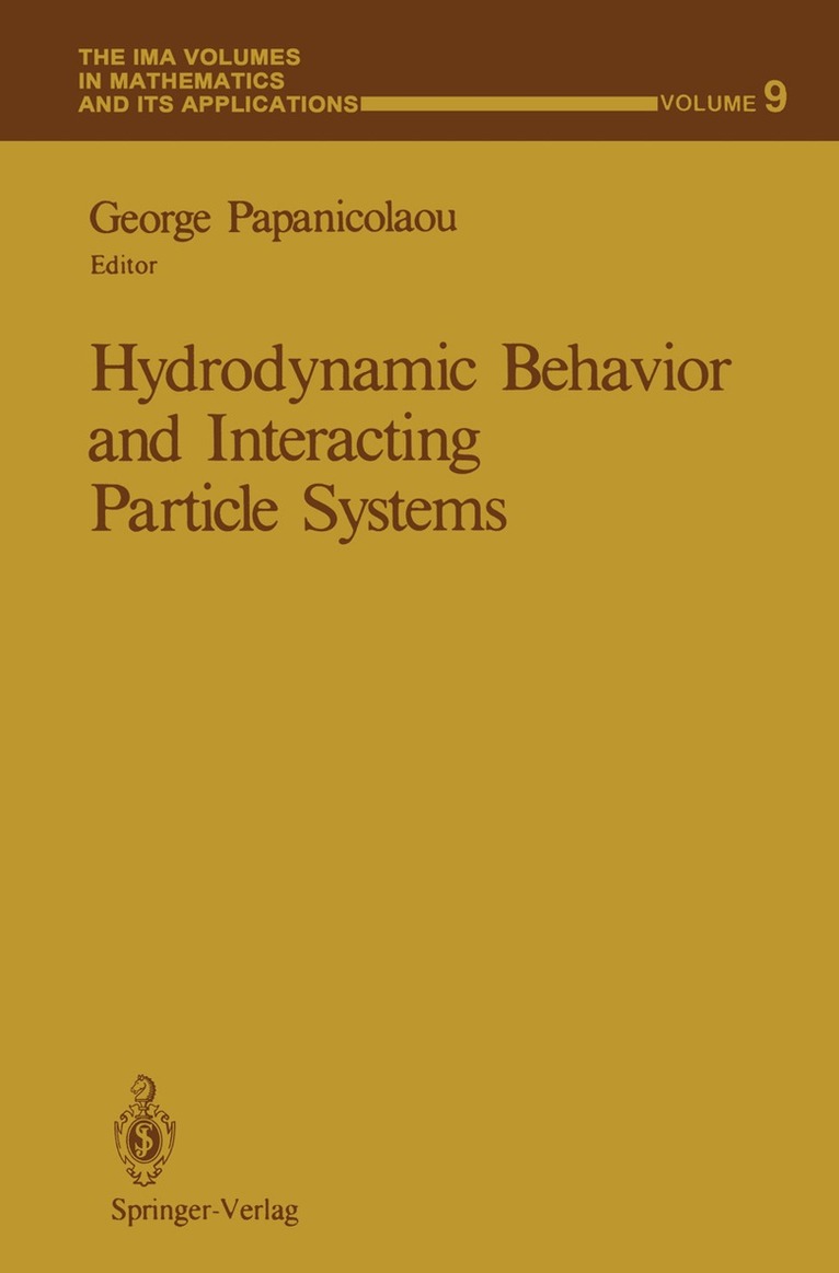 This IMA Volume in Mathematics and its Applications HYDRODYNAMIC BEHAVIOR AND INTERACTING PARTICLE SYSTEMS is in part the proceedings of a workshop which was an integral part of the 1985-86 IMA program on STOCHASTIC DIFFERENTIAL EQUATIONS AND THEIR APPLICATIONS. We are grateful to the Scientific Committee: Daniel Stroock (Chairman) Wendell Fleming Theodore Harris Pierre-Louis Lions Steven Orey George Papanicolaou for planning and implementing an exciting and stimulating year-long program. We especially thank the Program Organizer, George Papanicolaou for orga nizing a workshop which brought together scientists and mathematicians in a variety of areas for a fruitful exchange of ideas. George R. Sell Hans Weinberger PREFACE A workshop on the hydrodynamic behavior of interacting particle systems was held at the Institute for Mathematics and its Applications at the University of Minnesota during the week of March 17, 1986. Fifteen papers presented at the workshop are collected in this volume. They contain research in several different directions that are currently being pursued. The paper of Chaikin, Dozier and Lindsay is concerned with experimental results on suspensions in regimes where modern mathematical methods could be useful. The paper of Fritz gives an introduction to these methods as does the paper of Spohn. Analytical methods currently used by in the physics and chemistry literature are presented in the paper of Freed, Wang and Douglas. The paper of Caflisch deals with time dependent effects in sedimentation.