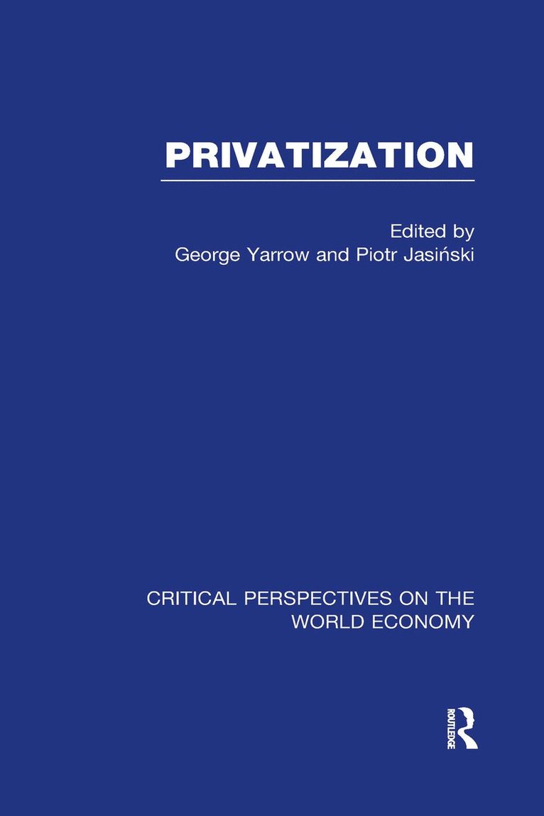 This title is the first in the Critical Perspectives on the World Economy series. With a new introduction by the editors it brings together the most significant contributions on privatization including material on the philosophical and historical context.Specific subjects covered include:* regulation and competition policy* different forms and techniques of privatization* the impact of privatization.Drawing on an enormous range of sources, the collection includes material by Hayek, Harold Demsetz, Douglass North, Janos Kornai, Jean Tirole and Jeffrey Sachs. It is an indispensible reference for policy makers, as well as academics concerned with economic policy and public economics.