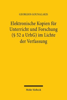Elektronische Kopien für Unterricht und Forschung (§ 52 a UrhG) im Lichte der Verfassung