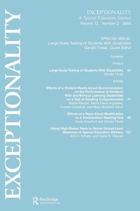 Large Scale Testing of Students With Disabilities addresses three issues: accommodations, modifications, and reporting of outcomes. The purpose is not to present an exhaustive summary of the research in these areas but to focus attention on how the issues are considered and empirically validated. The research summarized in this issue should serve as a model for state departments to consider in adoption of policy, either as findings upon which to inform policy or as a method to adopt in generating findings themselves. The studies reflect critical methodologies that are either experimental in design or use extant data sets as well as present a theoretical framework in how to interpret empirical results.
