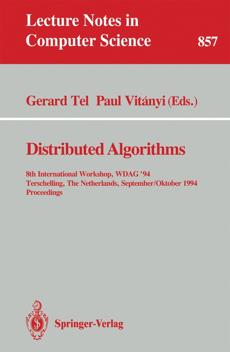 This volume presents the proceedings of the 8th International Workshop on Distributed Algorithms (WDAG '94), held on the island of Terschelling, The Netherlands in September 1994.Besides the 23 research papers carefully selected by the program committee, the book contains 3 invited papers. The volume covers all relevant aspects of distributed algorithms; the topics discussed include network protocols, distributed control and communication, real-time systems, dynamic algorithms, self-stabilizing algorithms, synchronization, graph algorithms, wait-free algorithms, mechanisms for security, replicating data, and distributed databases.