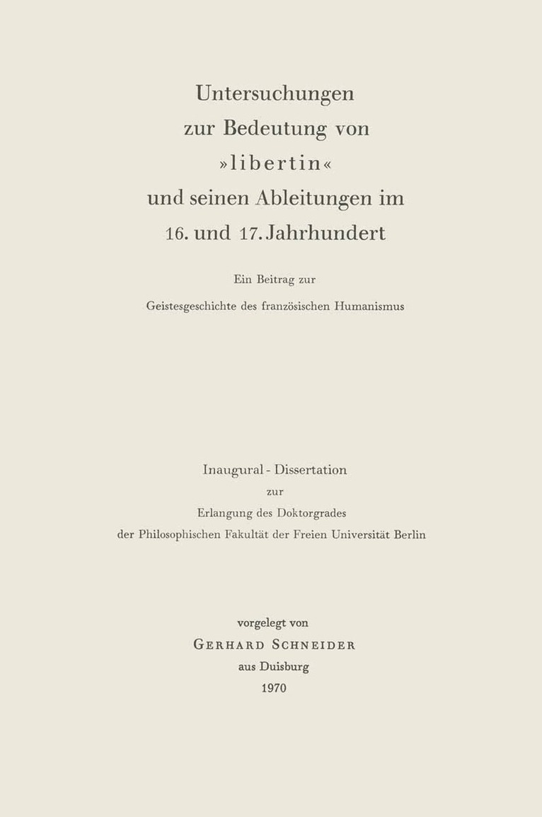 Untersuchungen zur Bedeutung von »Libertin« und seinen Ableitungen im 16. und 17. Jahrhundert