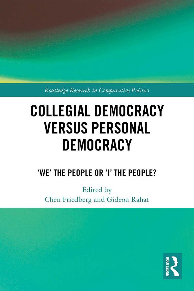 This book examines two patterns of democracy – collegial and personal – through a comprehensive comparison of political institutions.It develops a conceptual, theoretical, and methodological basis for differentiating collegial and personal democracies. Central institutions in democracy are classified according to their levels of personalism and collegialism, including political parties, candidate selection methods and electoral systems, legislature, and cabinets and governments. The book presents preliminary findings concerning the causes for this variance between the two democratic regime types.The book will be of key interest to students and scholars of democratic institutions, personalism and personalization, political parties and, more broadly, democracy.