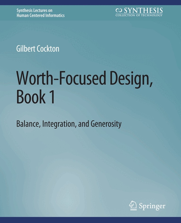 This book introduces the concept of worth for design teams, relates it to experiences and outcomes, and describes how to focus on worth when researching and expressing design opportunities for generous worth. Truly interdisciplinary teams also need an appropriate common language, which was developed in the companion book Worth-Focused Design, Book 1: Balance, Integration, and Generosity (Cockton, 2020a). Its new lexicon for design progressions enables a framework for design and evaluation that works well with a worth focus.Design now has different meanings based upon the approach of different disciplinary practices. For some, it is the creation of value. For others, it is the conception and creation of artefacts. For still others, it is fitting things to people (beneficiaries). While each of these design foci has merits, there are risks in not having an appropriate balance across professions that claim the centre of design for their discipline and marginalise others.Generosity is key to the best creative design—delivering unexpected worth beyond documented needs, wants, or pain points. Truly interdisciplinary design must also balance and integrate approaches across several communities of practice, which is made easier by common ground. Worth provides a productive focus for this common ground and is symbiotic with balanced, integrated, and generous (BIG) practices. Practices associated with balance and integration for worth-focused generosity are illustrated in several case studies that have used approaches in this book, complementing them with additional practices.