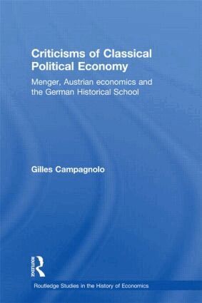 The role of the German Historical School and of Carl Menger (founder of the Austrian School) is appraised in this new book. This important period of the history of economics is vital to understand how the discipline developed over the next half-century. Gilles Campagnolo has produced an impressive original work which makes use of rarely seen research by Carl Menger and as such this book will be of interest across several discplines, including history of economic thought, economic methodology, philosophy of science and the history of ideas.