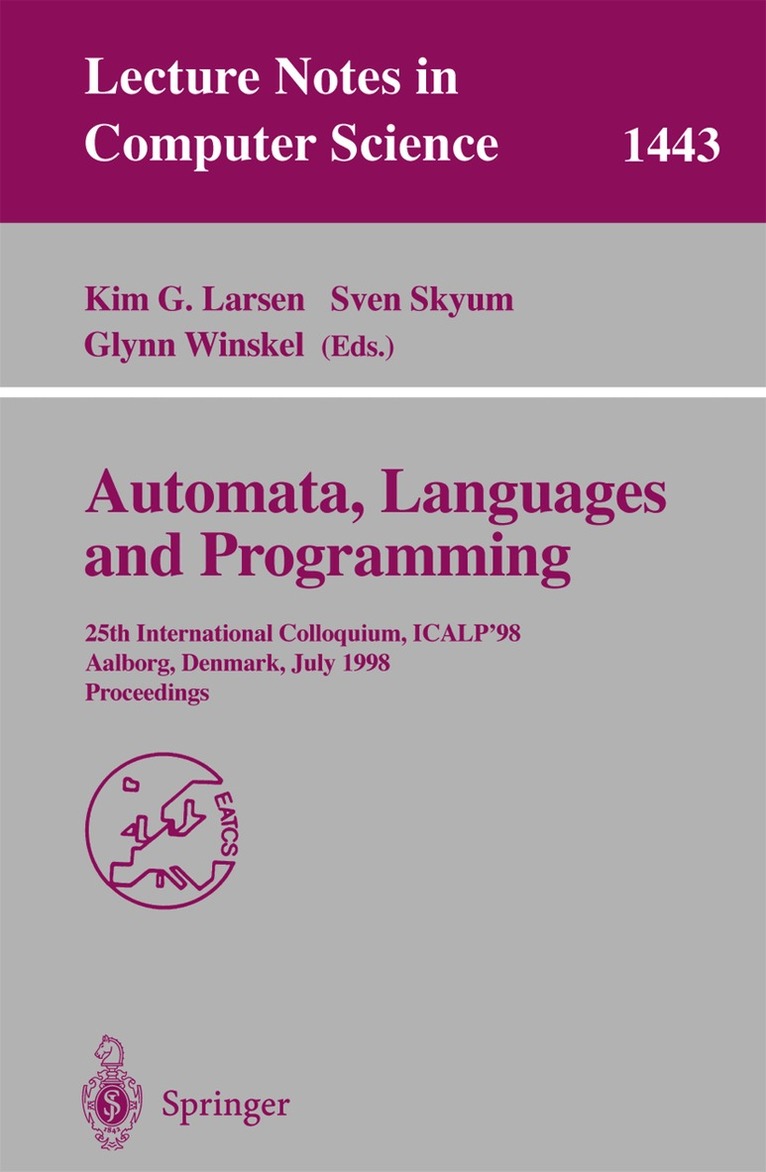 This book constitutes the refereed proceedings of the 25th International Colloquium on Automata, Languages and Programming, ICALP'98, held in Aalborg, Denmark, in July 1998.The 70 revised full papers presented together with eight invited contributions were carefully selected from a total of 182 submissions. The book is divided in topical sections on complexitiy, verification, data structures, concurrency, computational geometry, automata and temporal logic, algorithms, infinite state systems, semantics, approximation, thorem proving, formal languages, pi-calculus, automata and BSP, rewriting, networking and routing, zero-knowledge, quantum computing, etc..
