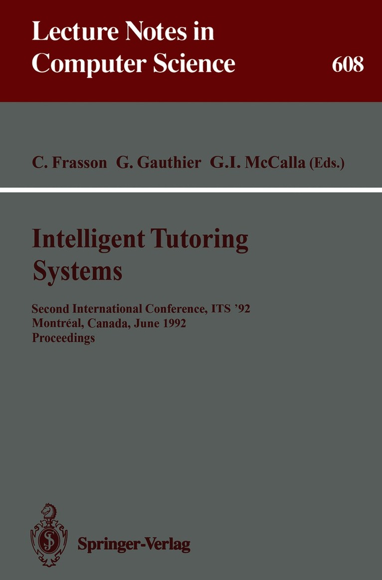 The international conference on Intelligent Tutoring Systems ITS-92 held in Montreal in June 1992 is the second in the series, following the success of ITS-88 held in Montrel in 1988. This proceedings volume contains 72 papers selected by the ITS-92 program committee from 160 papers submitted. They are preceded by six invited lectures from renowned speakers. Each paper was reviewed by at least three referees. The papers cover a wide range of subjects including: learning environments, architecture for ITS, kinowldge representation in ITS, cognitive models, help and advising systems, formal models, empirical studies, student modeling, teaching and learning strategies, software tools for tutoring, design issues, alternatives to one-on-one tutoring, and real world applications.