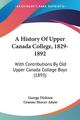 History Of Upper Canada College, 1829-1892