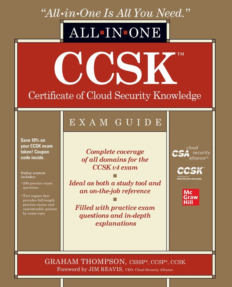 COVERS ALL EXAM TOPICS, INCLUDING:• Cloud Computing Concepts and Architectures• Governance and Enterprise Risk Management• Legal Issues, Contracts, and Electronic Discovery• Compliance and Audit Management• Information Governance• Management Plane and Business Continuity• Infrastructure Security• Virtualization and Containers• Incident Response• Application Security• Data Security and Encryption• Identity, Entitlement, and Access Management• Security as a Service• Related Technologies• ENISA Cloud Computing: Benefits, Risks, and Recommendations for Information Security