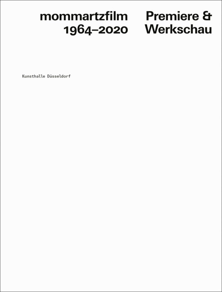 The work of the experimental filmmaker Lutz Mommartz (*1934) has been shaking up the art and film community for more than 50 years. Ever since he embarked on his career as an artist in the 1960s, Mommartz has been thinking out of the box. Rejecting the clichés of the movie industry, he aimed to bring about a radical new beginning of film – with a focus on aesthetic and social goals. In 1967, he soared to the top of the German avantgarde as a self-taught filmmaker after his surprising success at the renowned experimental film festival in Knokke, Belgium. Not only was he one of the founding members of the legendary Creamcheese bar populated by artists, but he also participated in influential festivals and exhibitions such as the documenta 4 (1968). From this time onward, he belonged to the circle of filmmakers who pressed ahead with “the other cinema” against the mainstream film industry and promoted alternative distribution systems. In 1975, Mommartz became the first professor of film at the Kunstakademie Düsseldorf and headed the film class until 1999. During a career spanning more than 50 years, Mommartz produced an impressive body of short and experimental films, feature films, and documentary recordings of Düsseldorf’s art scene. The two-volume publication provides an introduction into his diverse oeuvre and highlights thematic and associative connections between his films. Text in English and German.Published to accompany an exhibition at Kunsthalle Düsseldorf, between 21 November 2020 and 7 February 2021.