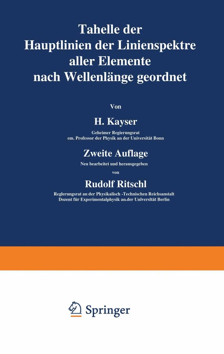 Tabelle der Hauptlinien der Linienspektren aller Elemente nach Wellenlänge geordnet