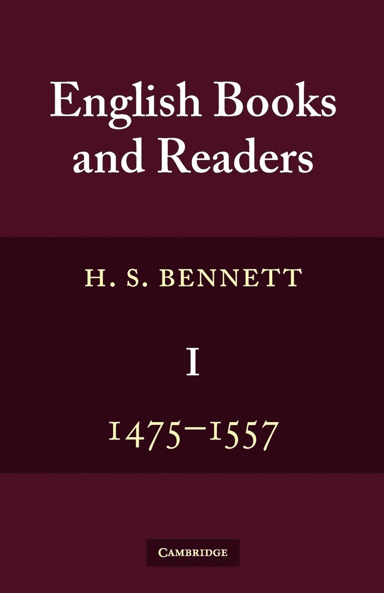 In this classic first volume of English Books and Readers, first published in 1952, H. S. Bennett covers in detail the history of books from Caxton down to the incorporation of the Stationers' Company, discussing the evidence for public literacy, the regulation of the book trade, the demand for books, the authors, translators, and printers of early books, and their methods. It is a history of society at the opening of the Art of Printing, without which civilization as we know it could hardly have taken shape at all - a chapter in the human story, unique in its significance and remarkably obscure before this book was first published.