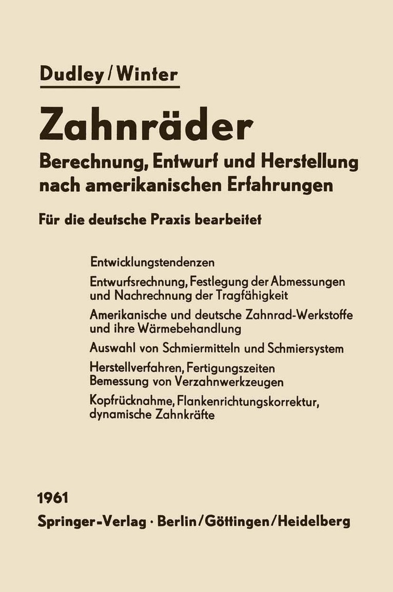 Zahnräder gehören zu den am häufigsten verwendeten Maschinen elementen - es gibt wohl nur wenige Maschinen, die keine Zahnräder enthalten. Jeder im Maschinenbau tätige Konstrukteur muß sich deshalb immer wieder mit den Fragen des Entwurfs, der Herstellung und des Betriebsverhaltens von Zahnrädern befassen. Berechnung und Konstruktion von Zahnradgetrieben sind heute je doch schon fast zu einer eigenen Wissenschaft geworden; der dauernde Druck, immer billigere, ruhiger laufende, leichtere und leistungsstärkere Maschinen zu bauen, erforderte zwangsläufig auch immer wieder Verbes serungen der Zahnradgetriebe. Infolge dieser dauernden Anstrengungen und der Erfahrungen mit ausgeführten Konstruktionen, haben wir heute schon einen verhältnismäßig guten Einblick in den Beanspruchungs mechanismus der Zahnräder und es sind eine ganze Reihe komplizierter Verfahren für die Zahnradherstellung entwickelt worden. Um die Ent wicklung weiter voranzutreiben, sind verschiedene große Firmen dazu übergegangen, Laufverhalten und Tragfähigkeit in Dauerversuchen zu ermitteln. Zur Entwicklung neuer Getriebetypen werden besondere Ent wicklungsprogramme durchgeführt. - So findet man laufend neue Mittel, die Laufruhe und Tragfähigkeit zu steigern und die Herstellung zu ver billigen. Da viele Konstrukteure jedoch nicht die Zeit haben, sich über alle Fortschritte des Getriebebaues auf dem Laufenden zu halten, kommen sie in Gefahr, mit ihren Konstruktionen - gegenüber den Spitzenleistungen ihrer Branche - ins Hinter treffen zu geraten. Es gibt zwar ein umfangreiches Schrifttum über alle Zahnrad fragen und doch ist es in vielen Fällen schwierig, die Auskunft zu finden die man gerade benötigt. Die für die Praxis des Getriebebaues erforderlichen Angaben inüber sichtlicher, sofort anwendbarer Form zusammenzufassen, ist der Zweck dieses Buches.