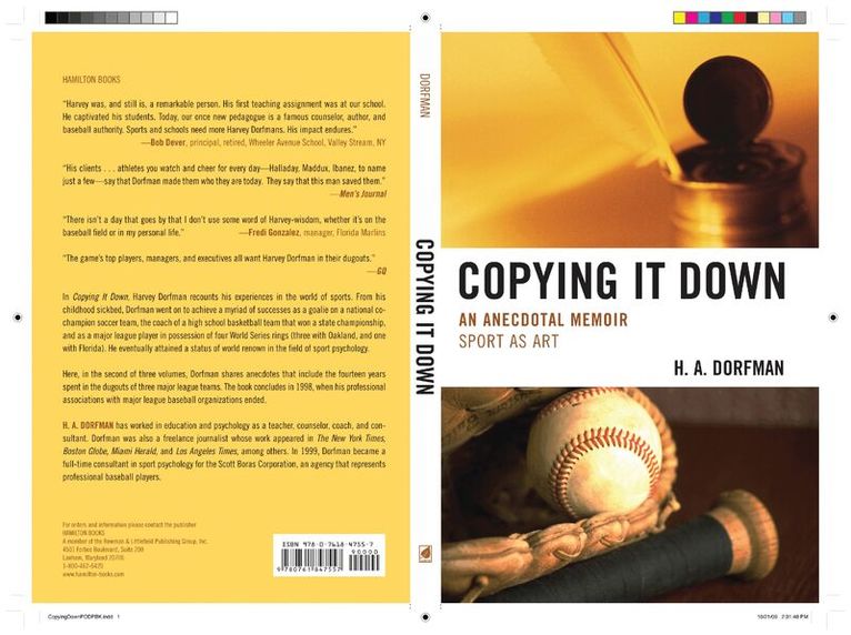 In Copying It Down, Harvey Dorfman recounts his experiences in the world of sports. From his childhood sickbed, Dorfman went on to achieve a myriad of successes, including goalie on a national co-champion soccer team and coach of a high school basketball team that won a state championship, and is a possessor of four World Series Rings (three with Oakland; and one with Florida). He eventually attained a status of world renown in the field of sport psychology. Here, in the second of three volumes, Dorfman shares anecdotes that include the fourteen years spent in the dugouts of three major league teams. The book concludes in 1998, when his professional associations with major league baseball organizations ended.