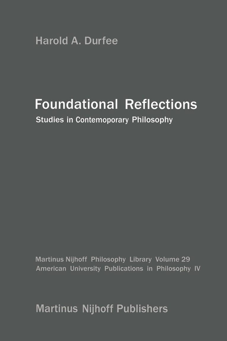 The American University Publications In From its inception Philosophy has continued the direction stated in the sub-title of the initial volume that of probing new directions in philosophy. As the series has developed these probings of new directions have taken the two fold direction of exploring the relationships between the disparate traditions of twentieth century philosophy and with developing new insights into the foundations of some enduring philosophic problems. This present volume continues both of these directions. The interaction between twentieth-century Anglo-Saxon and Continental philosophy which was an implicit theme of our first and third volumes and the explicit subject of our second volume is here continued in a series of studies on major figures and topics in each tradition. In the context of these interpretative studies, Professor Durfee returns again and again to the question of the relationships between the will and the reason, and explores the conflicting goals of creativity and objectivity in formulating a philosophic position. In so doing he raises the issue as his title suggests - of the foundations of philosophy itself. He seriously challenges the belief common to both pheomenology and analytic philosophy that philosophizing can be a presuppositionless activity, objectively persued independent of the personal (and, perhaps, arbitrary) commitments of the philosopher. This issue, critical as it is to all forms of philosophy, is surely a worthy one for a series such as ours.