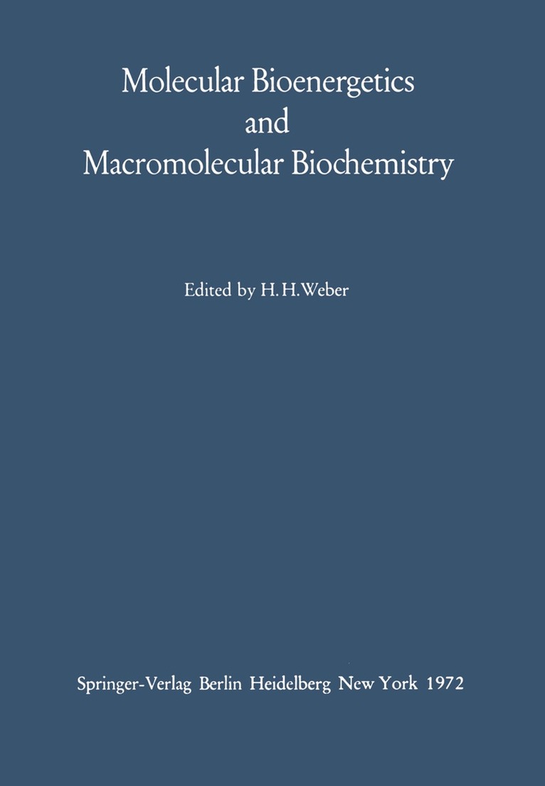 The Meyerhof Symposium on "Molecular Bioenergetics and Macromolecular Biochemistry" took place in Heidelberg from the 5th to the 8th of July, 1970. The timing was chosen to coincide with the creation of a new chair, in the Weizmann Institute of Science in Rehovot, in memory of OTTO MEYERHOF and the location was determined by the fact that so much of MEYERHOF'S scientific work was done in Heidelberg. The historical reason for the symposium was the urgent want of many leading biochemists and physiologists active in Molecular Biology to honour the memory of one of the greatest scientists in this field and also one of the greatest biologists of the 20th century. October 1971 is the twentieth anniversary of the death of OTTO MEYERHOF and 1972 marks 50 years since he was awarded the Nobel prize (1922). With regard to the age of some of his friends and pupils it was decided the symposium to be arranged in 1970, the first of the three commemorative years.