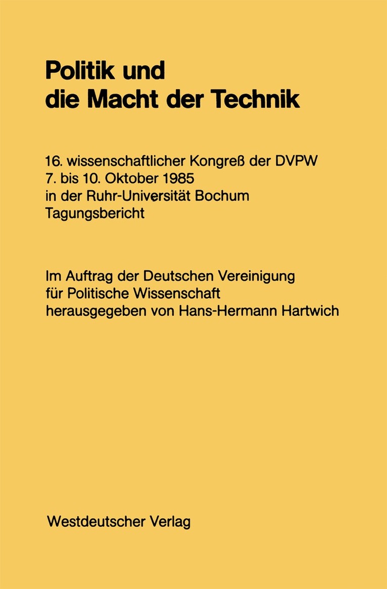 Wissenschaftlicher Kongreß der DVPW 4.–7. Oktober 1982 in der Freien Universität Berlin Tagungsbericht