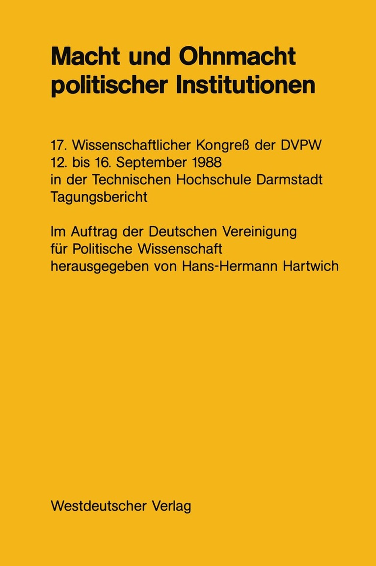 17. Wissenschaftlicher Kongreß der DVPW 12. bis 16. September 1988 in der Technischen Hochschule Darmstadt