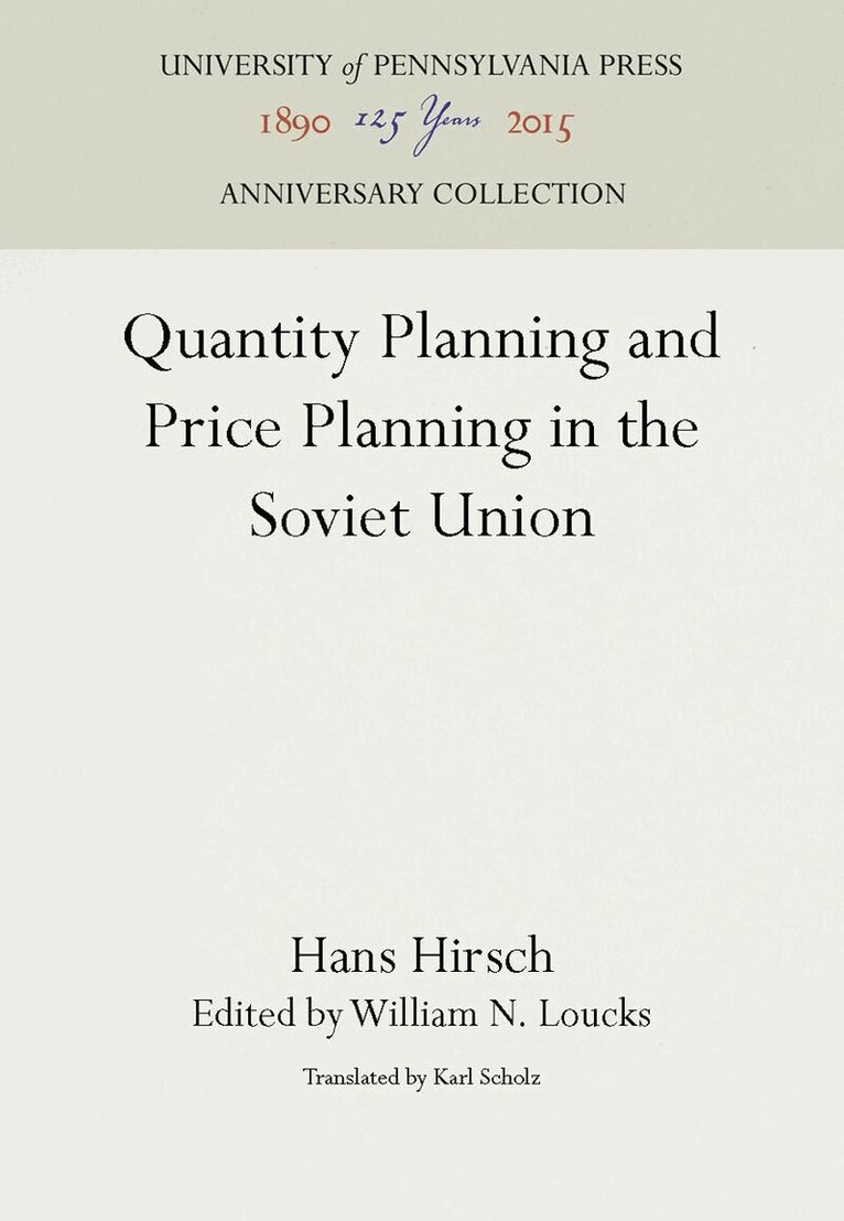 Karl Scholz's translation of the study Mengenplanung und Preisplanung in der Sovijunion by Hans Hirsch reproduces the provocative thesis of the author in concise, lucid English. The need for such a book is made dear in Hans Hirsch's introduction:"The question of economic accounting under socialism has attracted much interest for a long time. This is primarily due to its key position in the controversy over the economic order. However, if understood correctly, it is just as important to pure economic theory. Here lies the best opportunity first to examine price theory statements and to perceive how far price theory has either general validity or is merely applicable to particular historical phenomena and, secondly, to separate out the items that are not determined by the logic of the theoretical system but by the incidental peculiarities of the empirical economy to which the theory is related.Hans Hirsch's treatise deals with the Soviet experience and difficulties. The treatise also shows the methods of economic guidance employed in Russia by considering the following significant theoretical economic series of topics: the principles determine quantities of product and the direction of their use; the distribution of authority and influence between higher and lower guiding agencies; the role of prices in the guiding process; and finally the operating forces and viewpoints, in setting prices. In the presentation the conflict between the system of material planning, which forms the basis, and the effects of the financial means of guidance, especially of prices, becomes clearly visible. This gives occasion to attempt a theoretical interpretation of the material guidance system, as such, and in its relationship to a financial guidance system. In so doing the author expresses views as to the basic compatibility of material and financial guidance methods, contrary to hitherto prevailing doctrine. The knowledge thus acquired will serve as renewed stimulus to further development of the theory of economic planning.